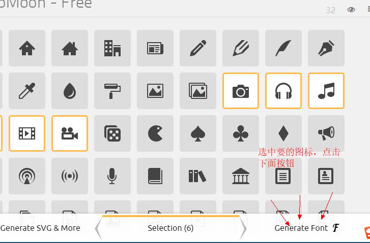 把压缩包里面的selection.json 从新上传,然后,选中自己想要新的图标,从新下载压缩包,替换原来文件即可。
