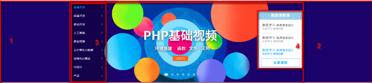 - 2号子盒子是 上部分 我们命名为 course-hd (hd 是 head 的简写 头部的意思,我们经常用)