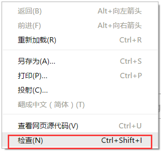 直接在页面上点击右键,然后选择 “检查” 快捷键 F12 或者 ctrl+shift+i