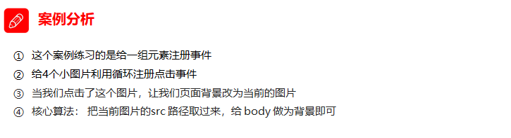 如果有同一组元素,我们想要某一个元素实现某种样式, 需要用到循环的排他思想算法: