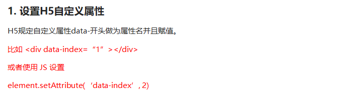 //(2) element.getAttribute('属性') get得到获取 attribute 属性的意思 我们程序员自己添加的属性我们称为自定义属性 index