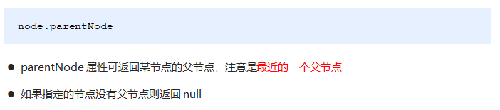 // 得到的是离元素最近的父级节点(亲爸爸) 如果找不到父节点就返回为 null
