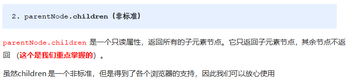 // 2. children 获取所有的子元素节点 也是我们实际开发常用的